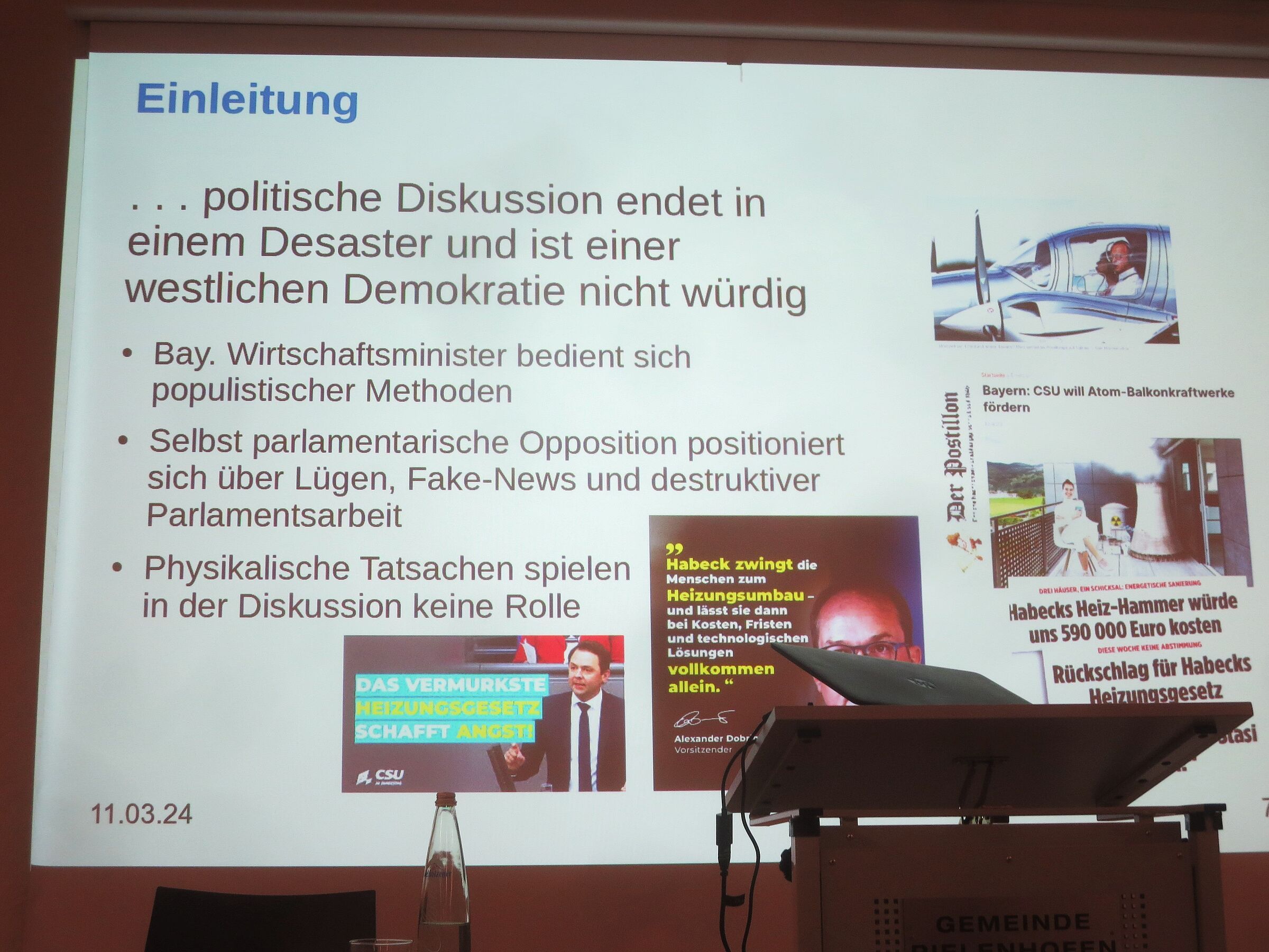 Zu diesem Thema besuchten etwa sechzig Bürgerinnen und Bürger Anfang März 2024 einen Informationsabend im Klosterstadl in Pielenhofen. Bürgermeister Gruber begrüßte den Maschinenbau-Diplomingenieur Franz Waldmann, Energie-Experten der Bund Naturschutz Kreisgruppe in Regensburg. Die organisatorischen Vorbereitungen hat Norbert Hirschmann übernommen.