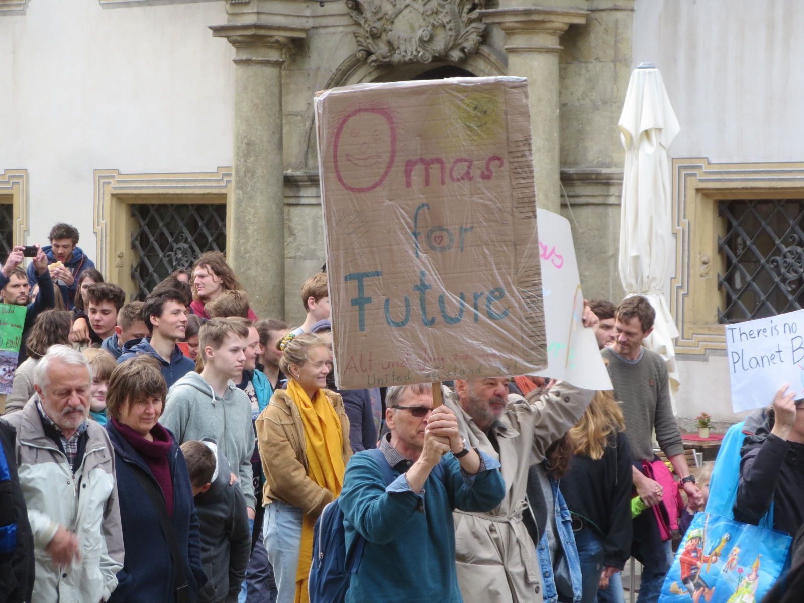 Seit mehr als 50 Jahren leben wir über unsere Verhältnisse. Liebe Mütter und Väter, Omas und Opas, geht mit bei der nächsten Demo "Friday for Future". Macht Druck auf die Politiker. Tut etwas für die Zukunft eurer Enkel!