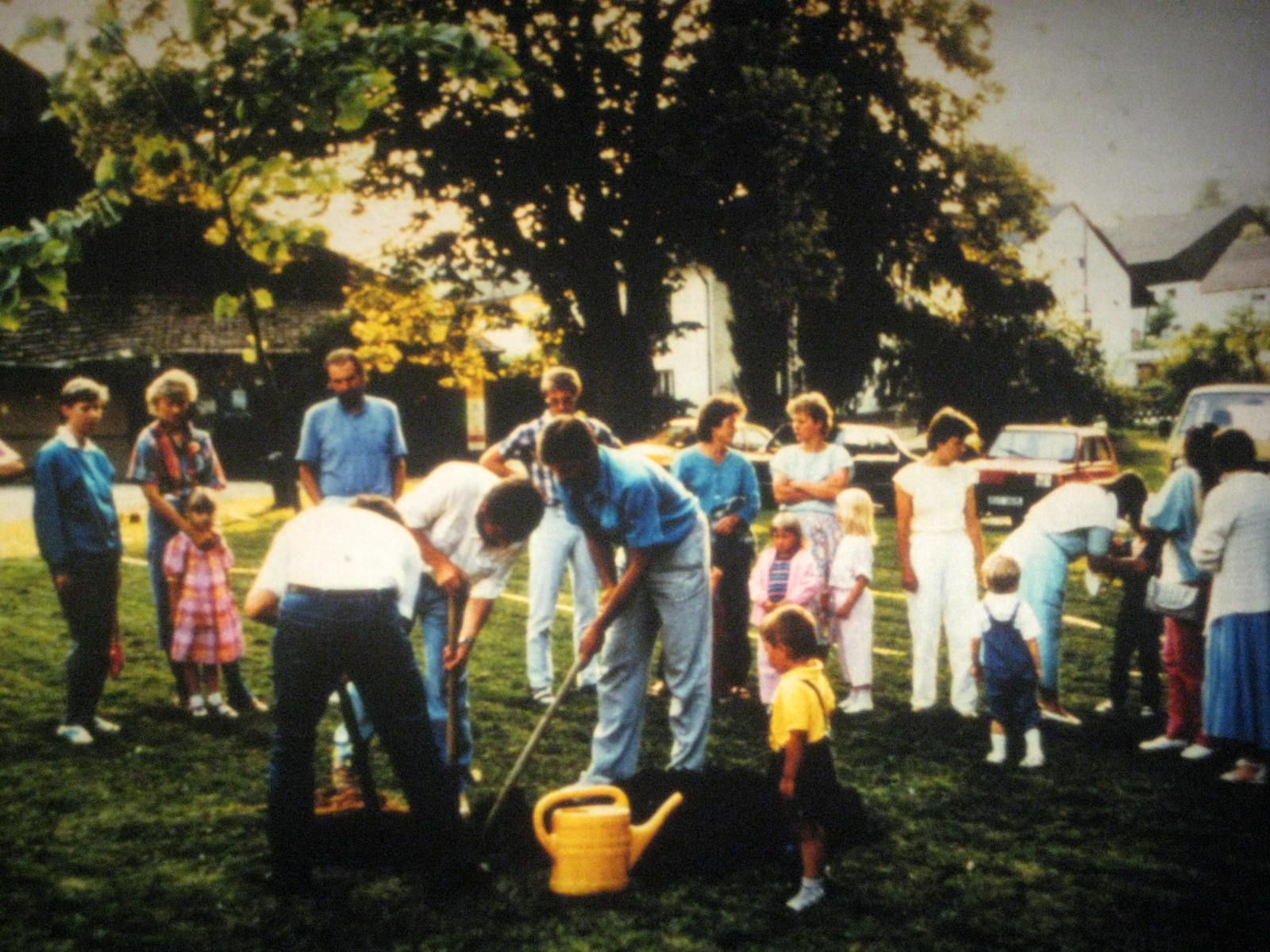 April 1988, Anlage einer Vogelschutzhecke mit 150 einheimischen Sträuchern im Bühelgraben in Pettendorf (hinter dem damaligen Edeka-Markt).