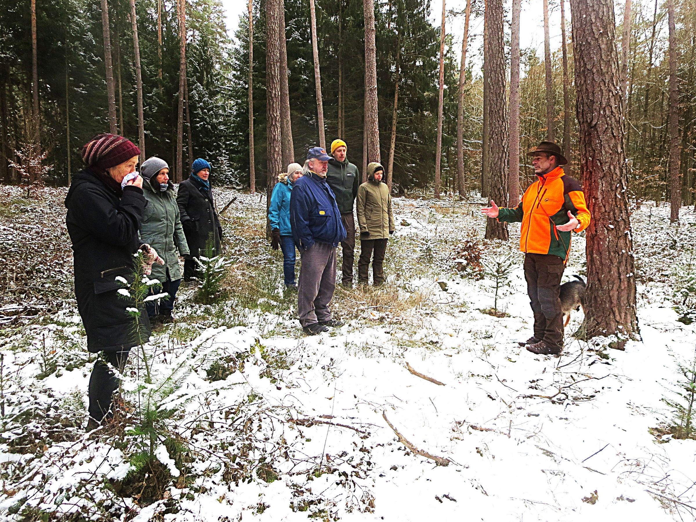 Januar 2023, Exkursion mit Diplom-Forstwirt Mages im Schweighauser Forst. Umgestaltung und Anpassen des Waldes an den Klimawandel.