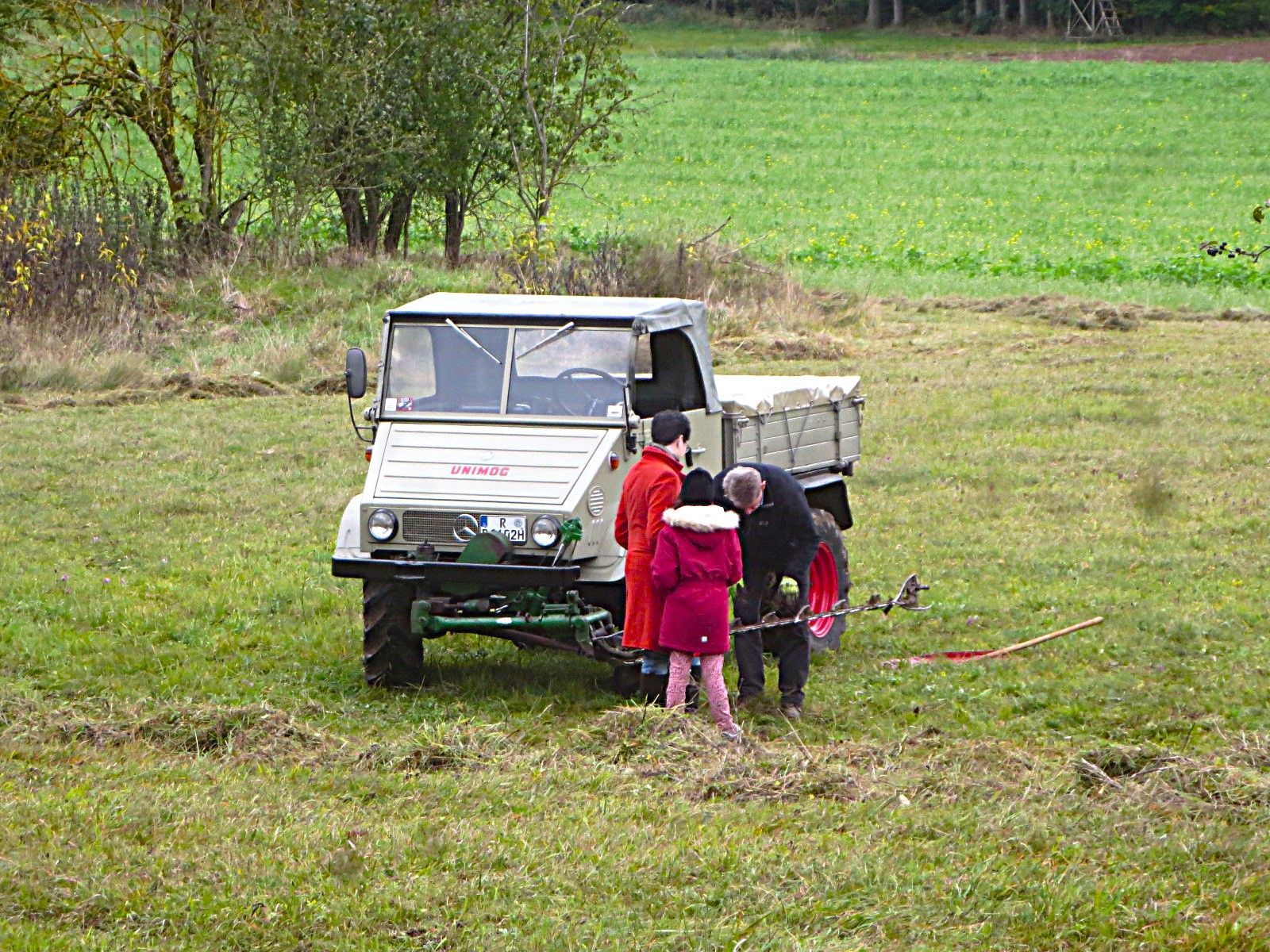 Oktober 2016, zum dreißigsten Mal mähen Mitglieder der Ortsgruppe den Schafbuckel mithilfe von Manfred Zieglers Unimog.